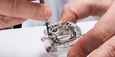 「 机芯养护科学严谨 」「 原厂配件技术独立 」「 三检保障层层把关 」